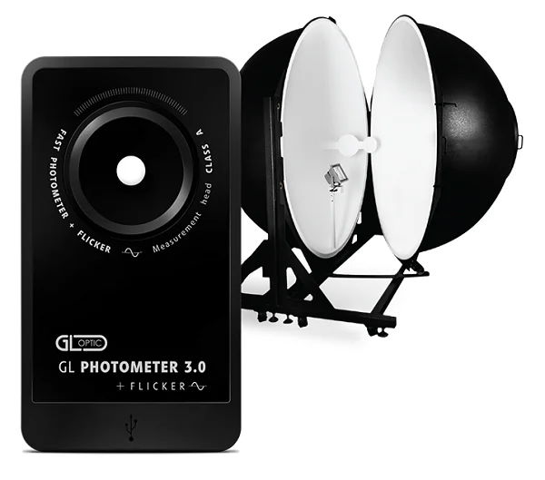 Grote niveaus van lichtflikkering kunnen worden gemeten met de snelle (125 kHz) fotometer GL PHOTOMETER 3.0 + Flicker wanneer deze wordt gebruikt in combinatie met het GL OPTI SPHERE systeem. De meest recente essentiële flikkermetrieken, zoals VESA (Video Electronics Standards Association), JEITA (Japan Electronics and Information Technology Industries Association), SVM (Stroboscopic Visibility Measure), PstML, flikkerfrequentie, flikkerindex, flikkerratio, SAM en Mp (flikkerperceptie), zijn eenvoudig te verkrijgen via het pc-programma GL Spectrosoft.
