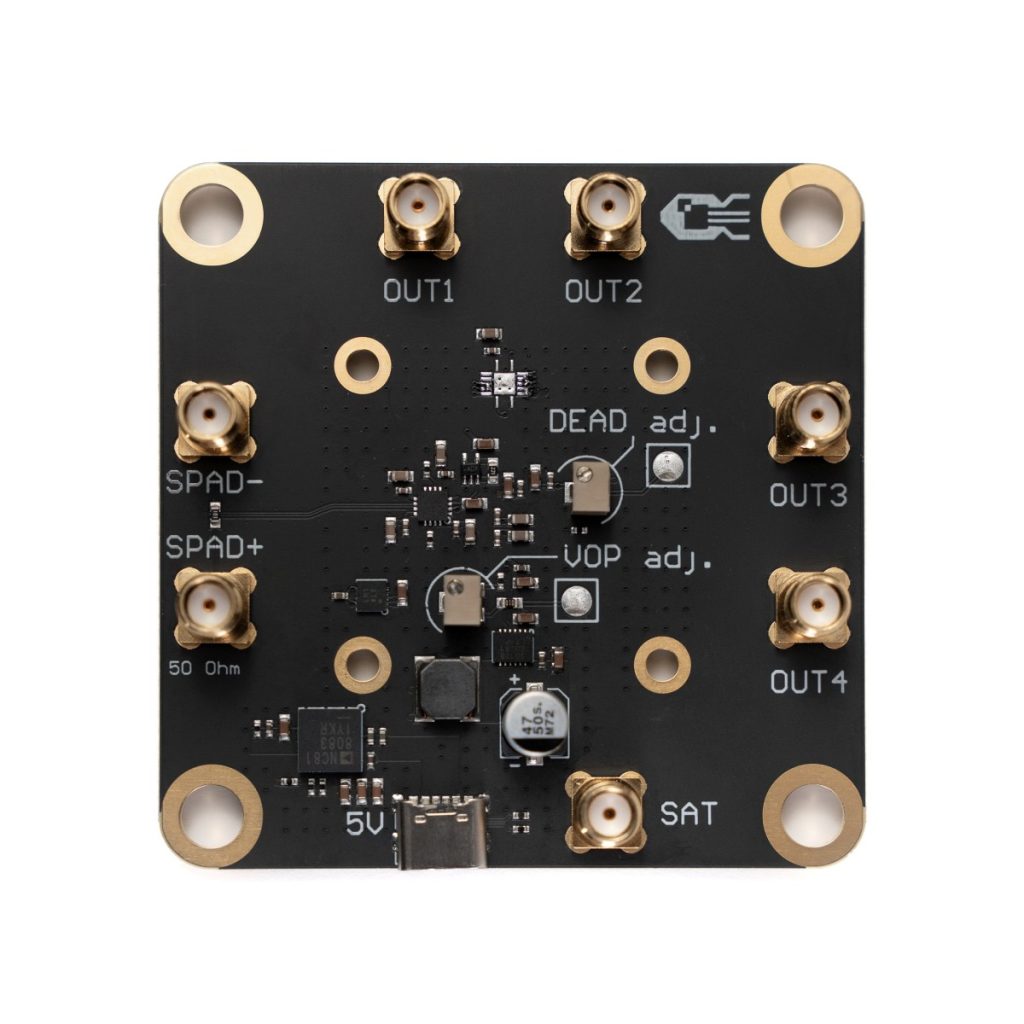The NovoViz NV01PNR-DEV was developed for applications requiring single photon point detectors with low timing jitter. The device does not require any external threshold circuitry and provides a fully digital output, compatible with standard CMOS electronics.